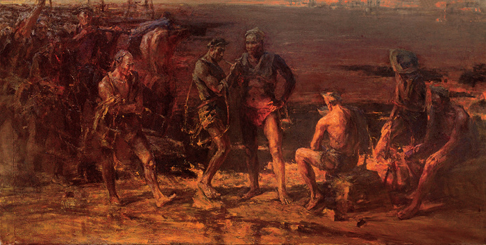 詹建俊《听涛——红霞》 180x300cm 2013年 布面油画