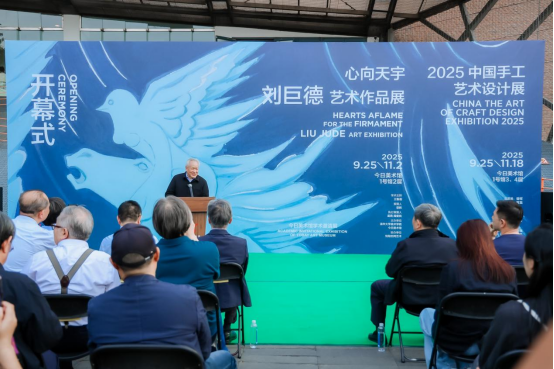才大颖在致辞中表示,“心向天宇——刘巨德艺术作品展”与“2025中国手工艺术设计展”同时开幕,可以从材美、工巧、气韵、时宜的视角,回望工艺美术的振兴之路。“心向天宇”的展览作品,体现了刘巨德先生对气韵与时宜的艺术理解,为传统工艺如何当代表达树立了一个时代标杆。刘巨德先生创意、创新、创造的叙事表达,将审美趣味与文化、艺术精神融入时代脉动,并在引领中不断开拓新的艺术境界。