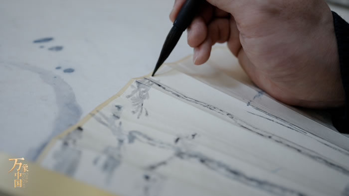 扇骨在时光中慢慢成型,扇面的故事也在笔墨间酝酿。孟鹤堂专程走进清华大学美术学院,与艺术家刘利平共同商讨创作主题。“高山流水遇知音”,刘利平一语点破东方友人相交的雅致——中国人总爱寄情山水,以笔墨为媒,将心底的情谊藏进峰峦叠嶂、流水潺潺之中。于是,一幅山水图景渐渐在纸上舒展,它不仅是扇面的装饰,更是孟鹤堂对挚友最真挚的情感注脚。
